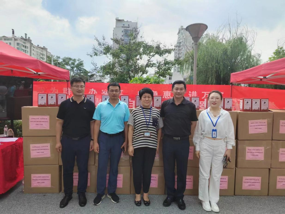 峻海物聯(lián)營(yíng)銷總監(jiān)張?bào)闼嚞F(xiàn)場(chǎng)為群眾介紹面罩應(yīng)用及領(lǐng)取流程