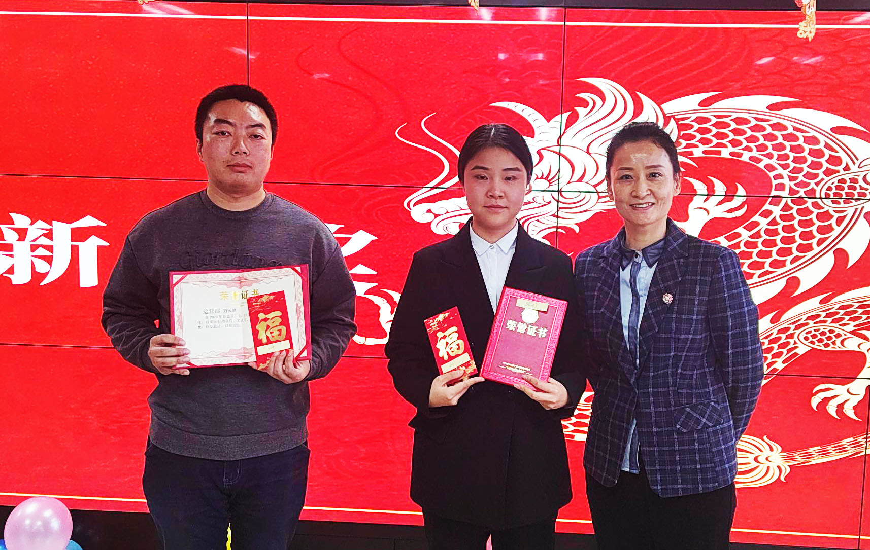 優(yōu)秀員工獎:研發(fā)部王臨風/關國祥/王彤、運營部趙茜、商務部胡冬冬、財務部張書寧、工程部李敦奎