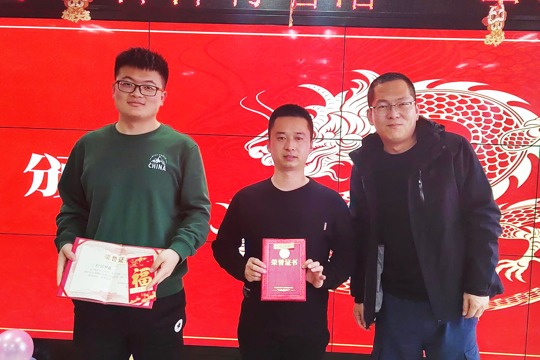 研發(fā)部陸兵:謙虛好學獎、趙貴生:創(chuàng)新獎